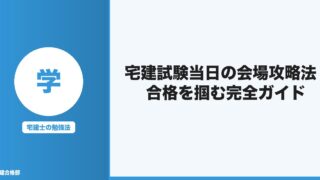 宅地建物取引士試験(宅建試験)の合否は、これまでの勉強の成果はもちろんですが、当日の会場でのパフォーマンスにも大きく左右されます。毎年多くの受験生が「勉強は十分だったのに、当日うまくいかなかった」という悔しい思いをしています。そんな失敗を避...