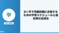 - 試験日から逆算して、週ごとの学習計画を立てる。