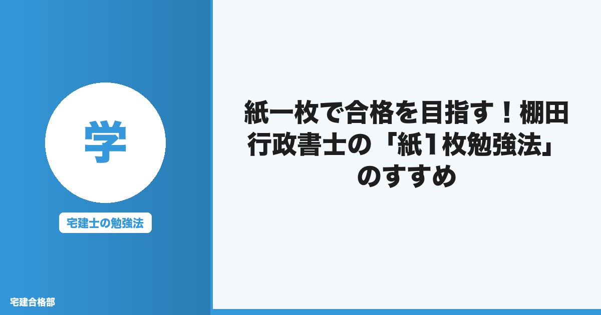 今回は、宅建士試験対策において効率的に学習内容を記憶し、計画的に復習することで知識を長期にわたって保持する「紙1枚勉強法」をご紹介します。