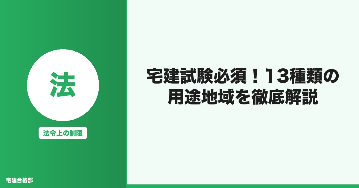 こんにちは!今回は宅建試験で必ず出題される「用途地域」について、13種類全てを詳しく解説します。用途地域は都市計画の基本となる重要な概念ですので、しっかり理解しておきましょう。