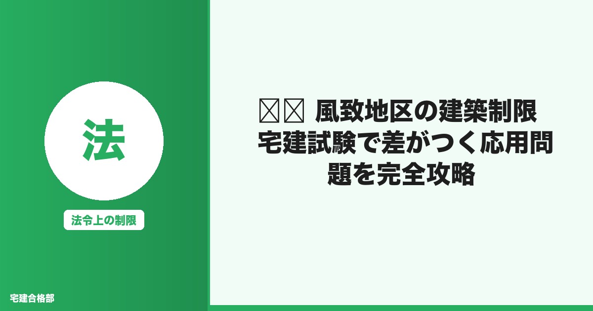 風致地区の知識は、宅建試験だけでなく、実際の不動産取引や都市計画の現場で必ず役立ちます。美しい景観を守りながら適切な開発を進める、そんな社会的責任を担う不動産のプロフェッショナルを目指して、一緒に頑張りましょう!