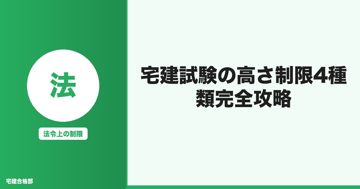 **この記事では、宅建試験で頻出の高さ制限4種類を体系的に整理し、効率的な覚え方をご紹介します。**過去問分析に基づく引っかけポイントや、実際の試験で使える暗記テクニックも詳しく解説していきます。