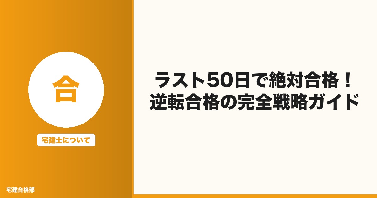主要キーワード: 宅建 50日 合格、宅建 短期合格、宅建 直前対策、宅建 逆転合格、宅建試験 ラストスパート