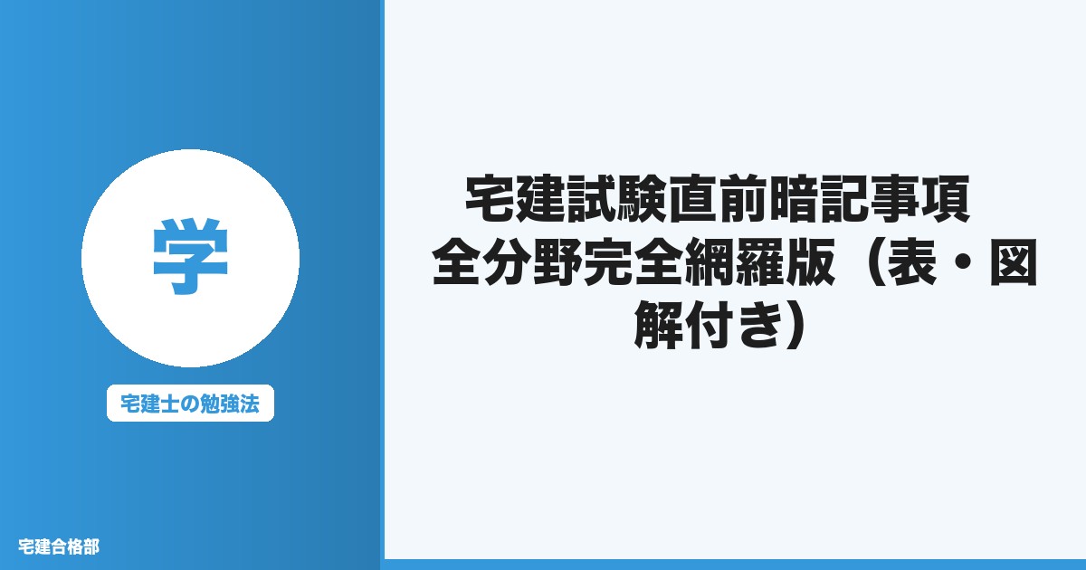 - ✅ 宅建試験の全分野(宅建業法・法令制限・民法等・税その他)の重要暗記事項