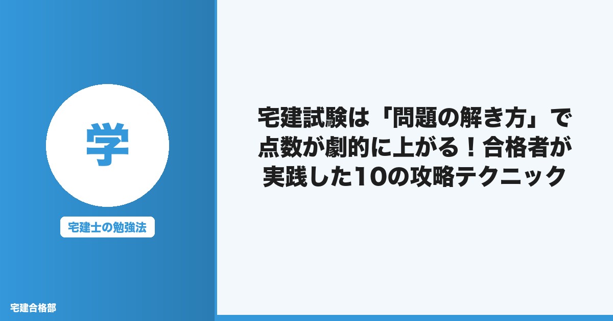 宅建試験は正しい解法を知っているかどうかで大きく差がつきます。知識の暗記だけでなく、「どう解くか」の技術を磨いて、確実な合格を掴んでください!