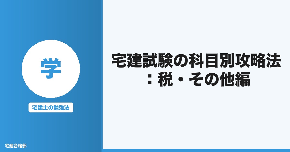 みなさん、こんにちは!宅建合格部、部長のさかまさです。今回のブログでは多くの受験生が「えっ、どうしよう…」と頭を抱えがちな「税・その他」の分野について、わかりやすく攻略法をお話しします。難しそうに見えても大丈夫、一緒に頑張っていきましょう!
